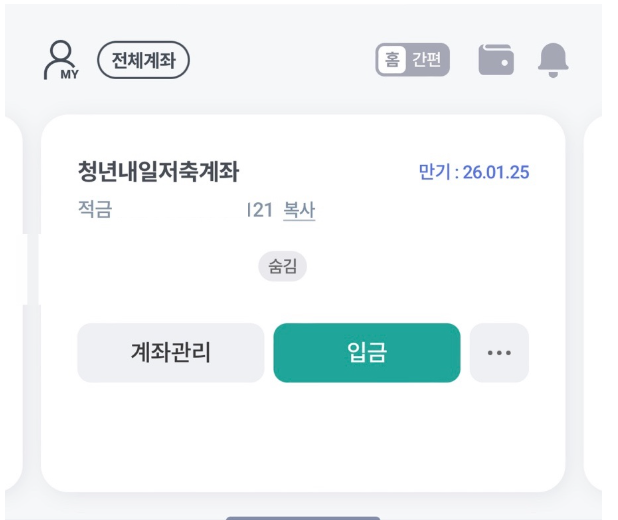 1.하나원큐 모바일 접속 > 청년내일저축계좌 > 계좌관리