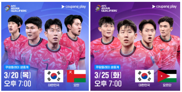 | 대한민국 vs 오만 | 2025년 3월 20일(목) | 20:00 | 고양종합운동장 | SBS, 쿠팡플레이 |