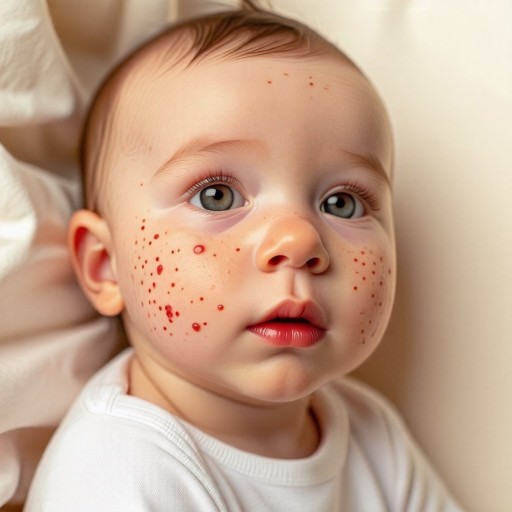 - 얼굴에서 시작해 전신으로 퍼지는 붉은 발진